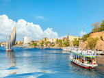 - Transfer ao aeroporto do Cairo e voo com destino a Aswan; chegada ao aeroporto de Aswan, traslado ao cruzeiro no Nilo e check-in às 12h (o almoço está incluído no cruzeiro no Nilo); comece a visita guiada em uma felucca (típico barco à vela egípcio) para admirar a vista panorâmica do Mausoléu de Agha Khan, da Ilha Elefantina e do Jardim Botânico como transfer para visitar o Templo de Philae, construído no período ptolomaico e dedicado a Deusa Ísis, o complexo foi desmantelado e transferido para a Ilha Agilkia, que através da intervenção da UNESCO foi salva das águas da barragem de Assuão; foi um dos últimos locais de culto faraônico em funcionamento até ao século VI d.C., e onde está registada a última inscrição hieroglífica conhecida, datada de 395 d.C.; ao final da visita, retorno ao cruzeiro pelo Nilo; jantar;